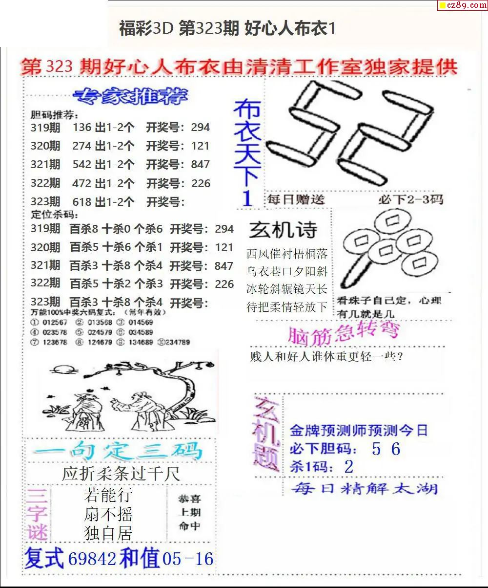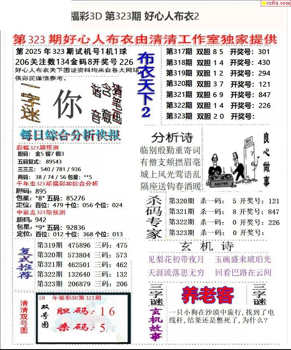 好心布衣2025323期3d图谜